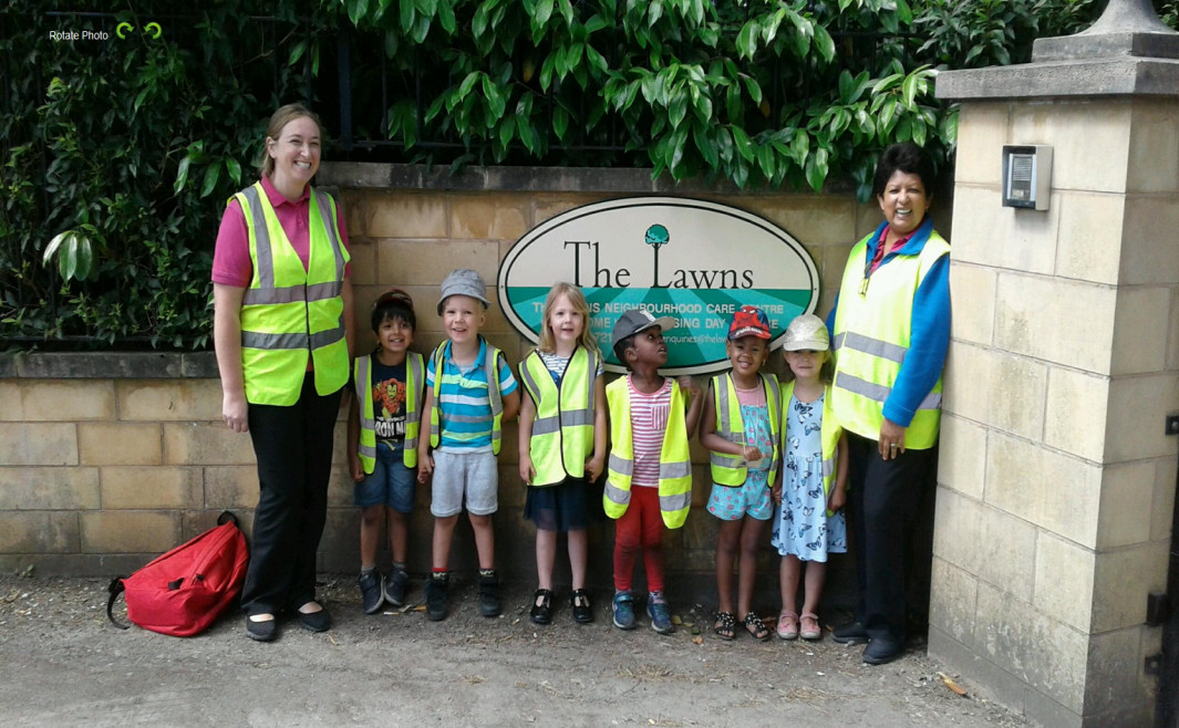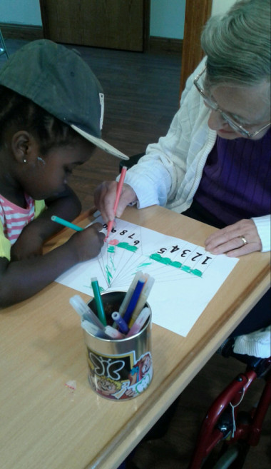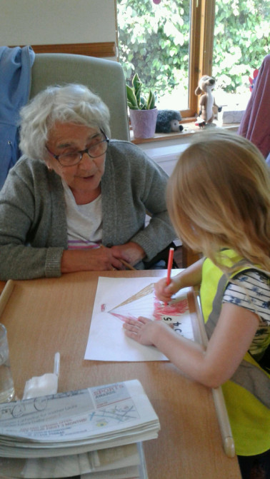 This morning a small group of children visit The Lawns care home. The children sing a few songs and colour in some circus colouring in sheets with the residents.